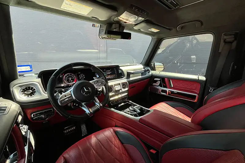 The Mercedes-AMG G63 is the high-performance variant of the iconic G-Class SUV. It combines robust, boxy off-road design with cutting-edge AMG engineering. Under the hood, a handcrafted 4.0 L V8 biturbo engine—augmented with a mild-hybrid system—delivers potent power and torque. The 9-speed automatic transmission ensures smooth, responsive shifts, while the permanent AWD system gives it strong traction on both paved roads and rough terrain.